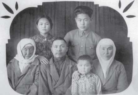 Семья: слева направо: бабушка Рахима, Отец Ракыш, сестренка Бахтыла,